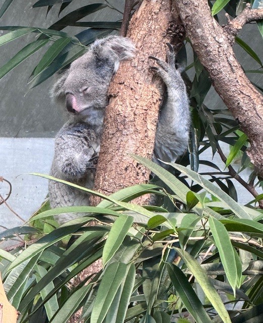 Im Australien-Bereich wurde es besonders spannend. Dort begegneten wir Emus und Kängurus 🦘 – ein echtes Highlight! Anschliessend besuchten wir die Koalabären 🐨, die gemütlich in den Bäumen entspannten und uns ein Lächeln ins Gesicht zauberten.